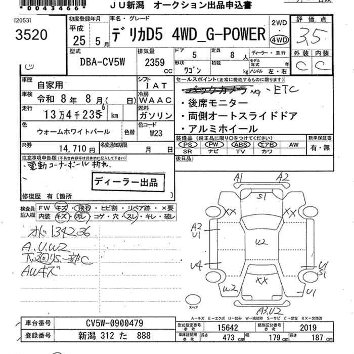 MITSUBISHI DELICA D:5 2013 г., лот № 3520