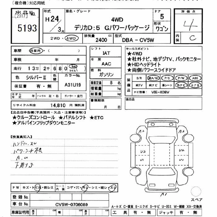 MITSUBISHI DELICA D:5 2012 г., лот № 5193