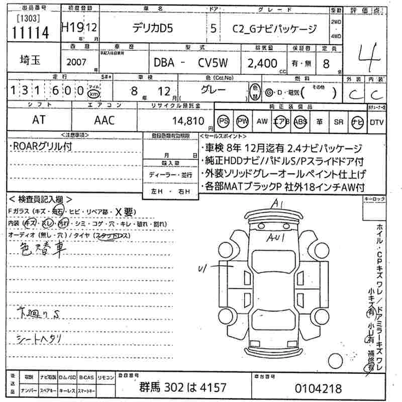 MITSUBISHI DELICA D:5 2007 г., лот № 11114