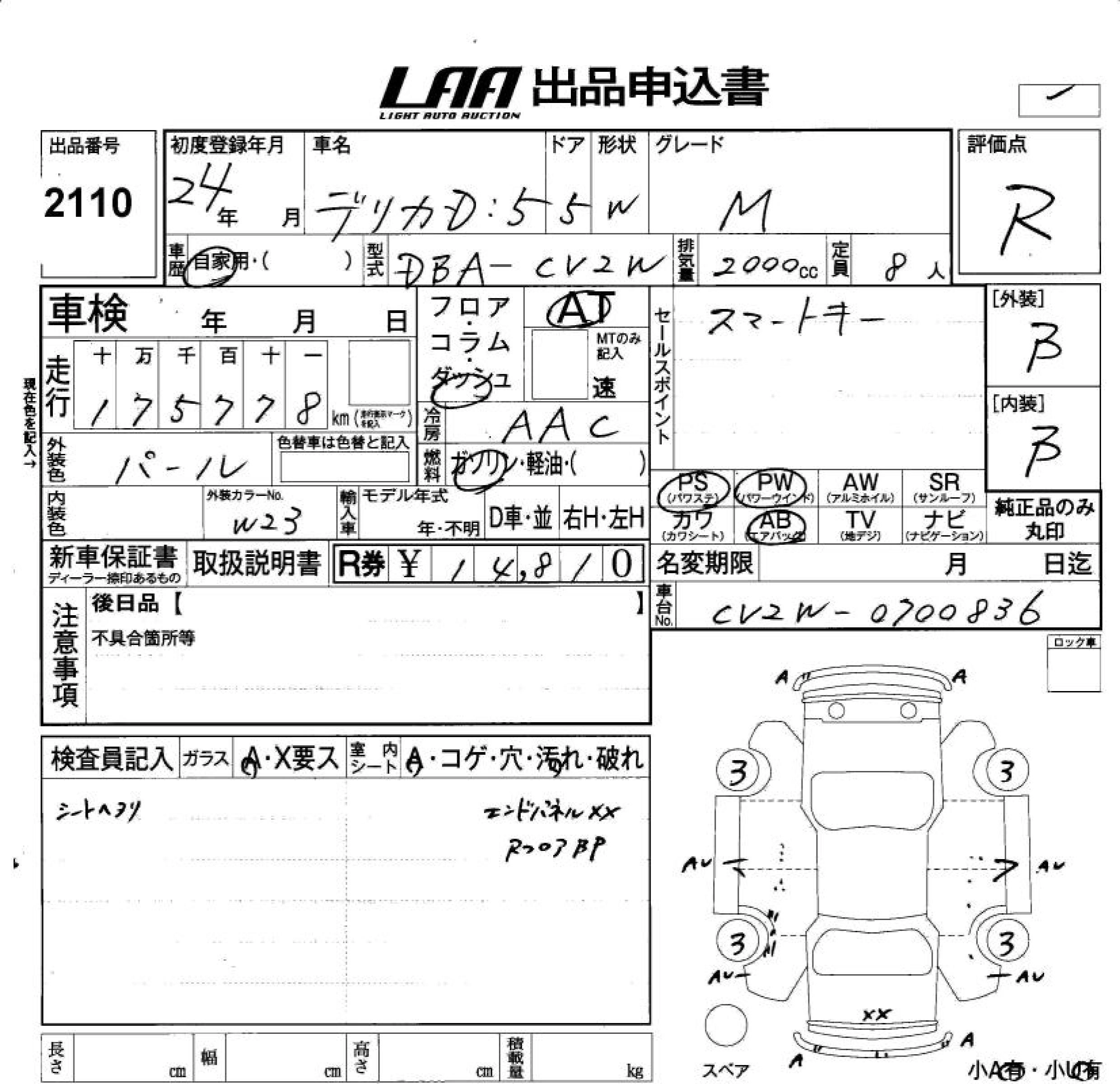 MITSUBISHI DELICA D:5 2012 г., лот № 2110