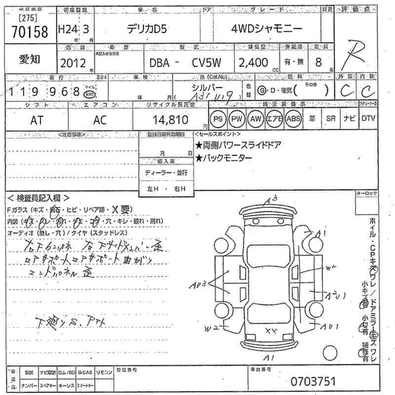 MITSUBISHI DELICA D:5 2012 г., лот № 70158
