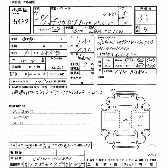 MITSUBISHI DELICA D:5 2017 г., лот № 5462