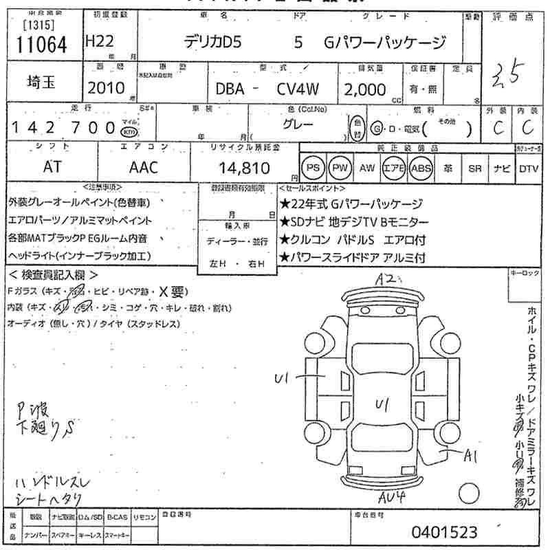 MITSUBISHI DELICA D:5 2010 г., лот № 11064