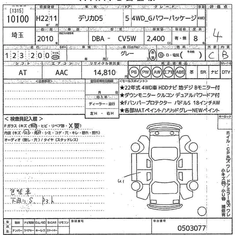 Год выпуска2010 Пробег 123 000 км КузовCV5W Комплектация4WD_G POWER PACK -JI