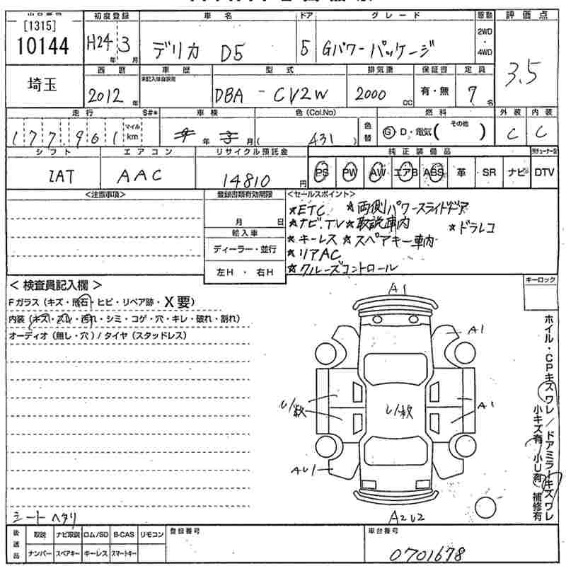 MITSUBISHI DELICA D:5 2012 г., лот № 10144