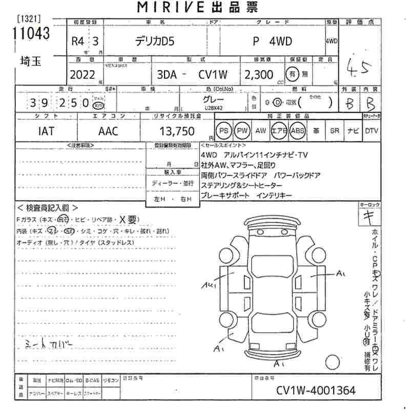 MITSUBISHI DELICA D:5 2022 г., лот № 11043