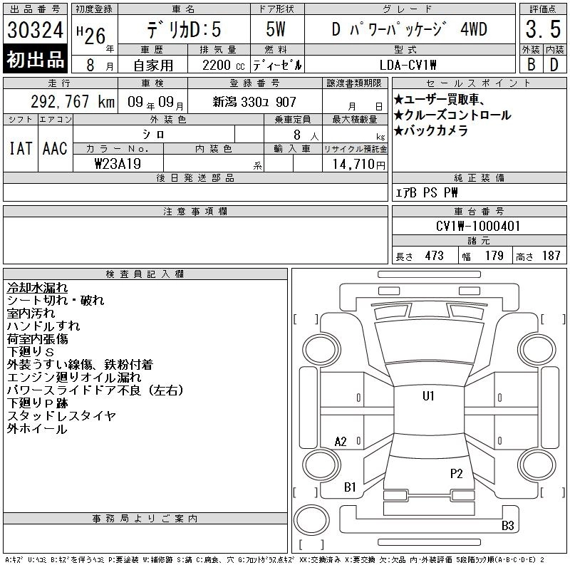 MITSUBISHI DELICA D:5 2014 г., лот № 30324