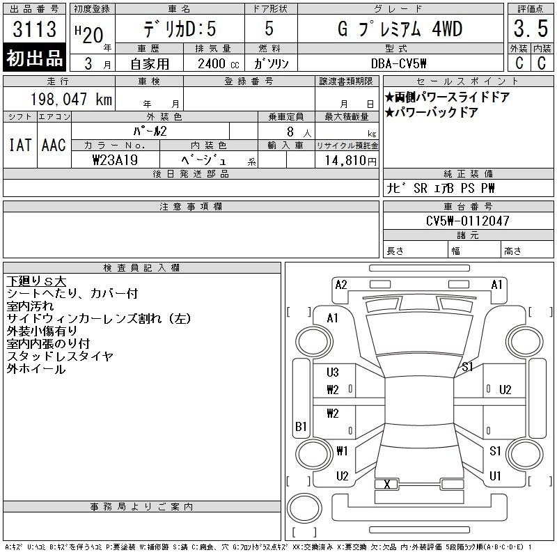 Год выпуска2008 Пробег 198 000 км КузовCV5W КомплектацияG PREMIUM 4WD