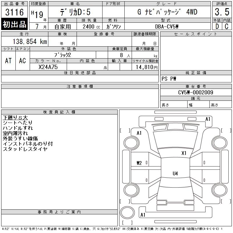 MITSUBISHI DELICA D:5 2007 г., лот № 3116