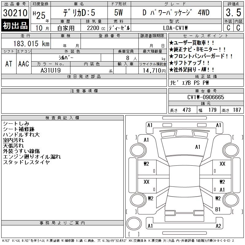 Год выпуска2013 Пробег 183 000 км КузовCV1W КомплектацияD POWER PACK -JI4WD