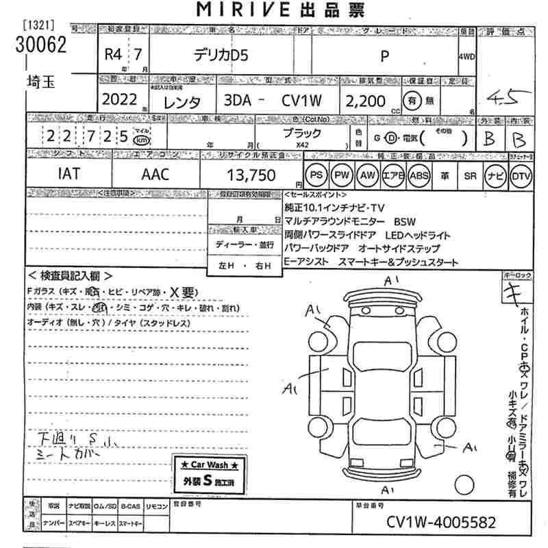 MITSUBISHI DELICA D:5 2022 г., лот № 30062