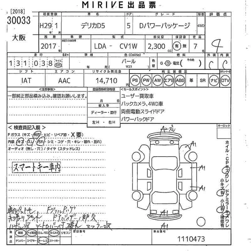 MITSUBISHI DELICA D:5 2017 г., лот № 30033