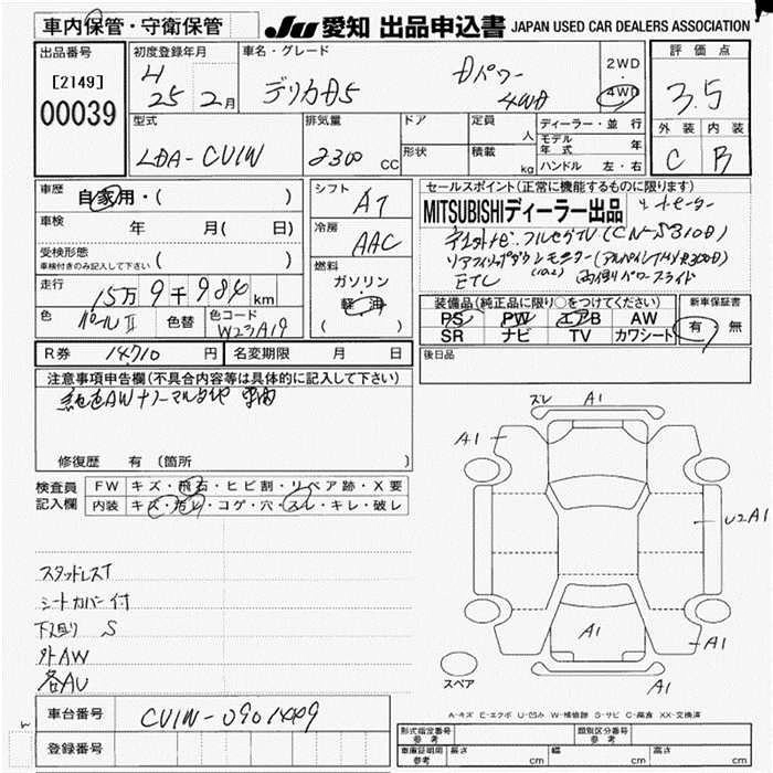 MITSUBISHI DELICA D:5 2013 г., лот № 39