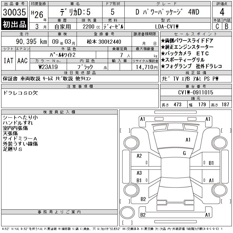 MITSUBISHI DELICA D:5 2014 г., лот № 30035