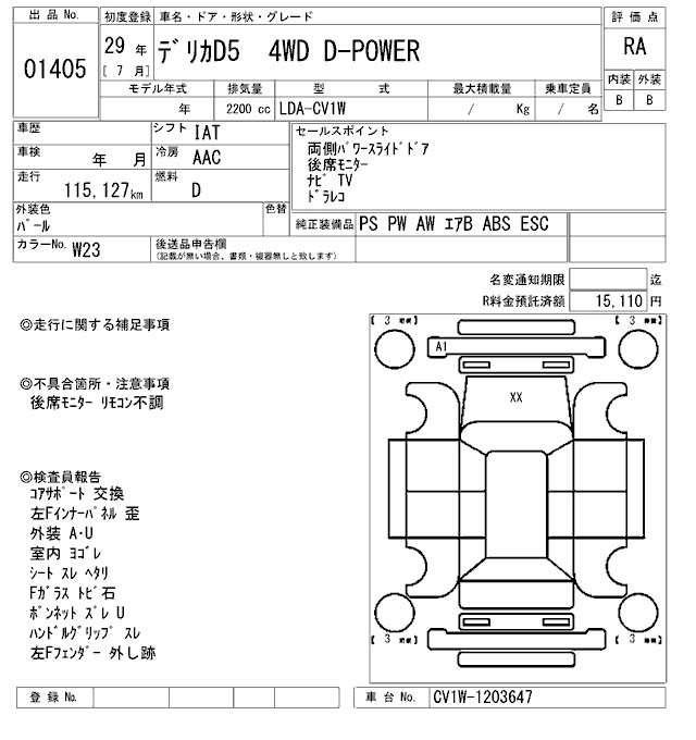 MITSUBISHI DELICA D:5 2017 г., лот № 1405