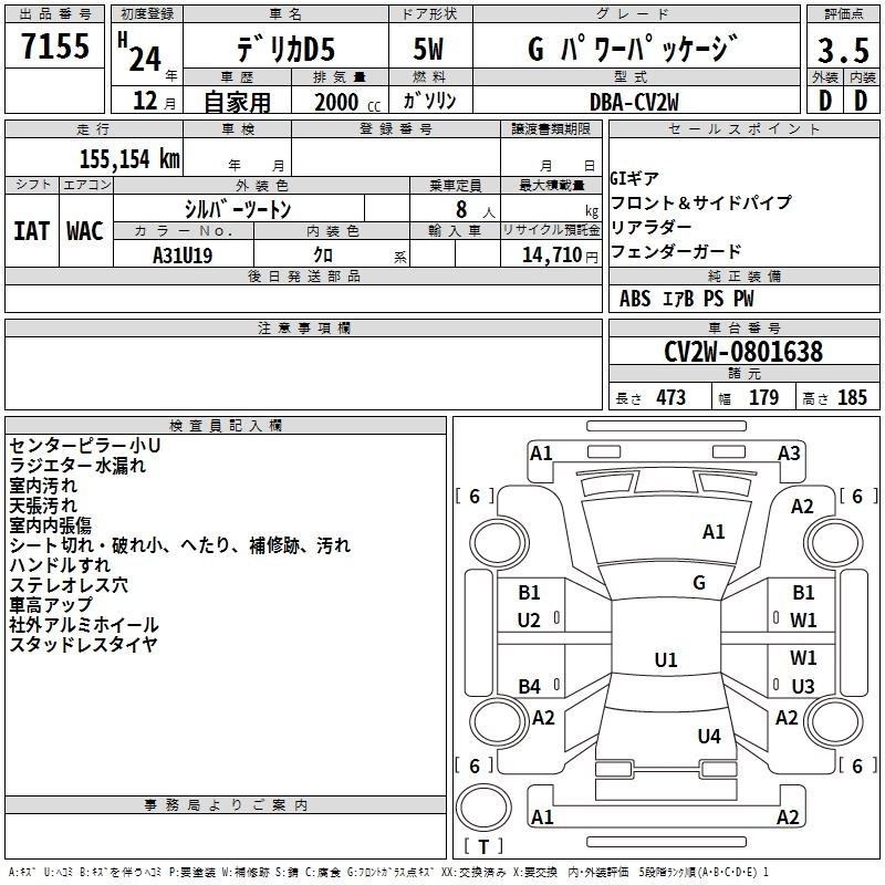 MITSUBISHI DELICA D:5 2012 г., лот № 7155