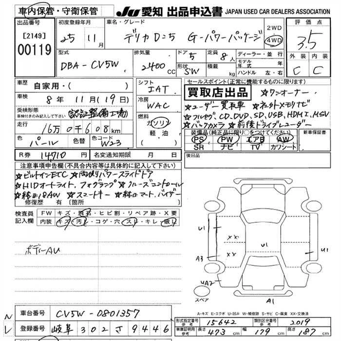 MITSUBISHI DELICA D:5 2013 г., лот № 119