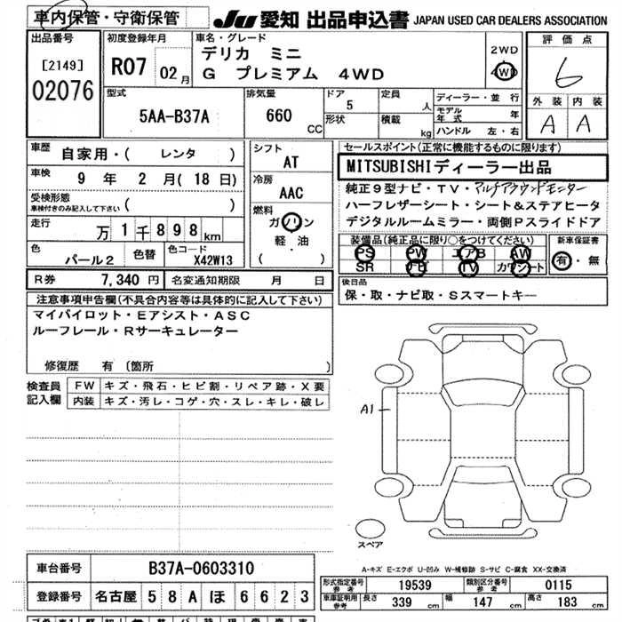 Статус выставлен на аукцион Лот 2076 Аукцион JU Aichi Дата аукциона 12.03.2026