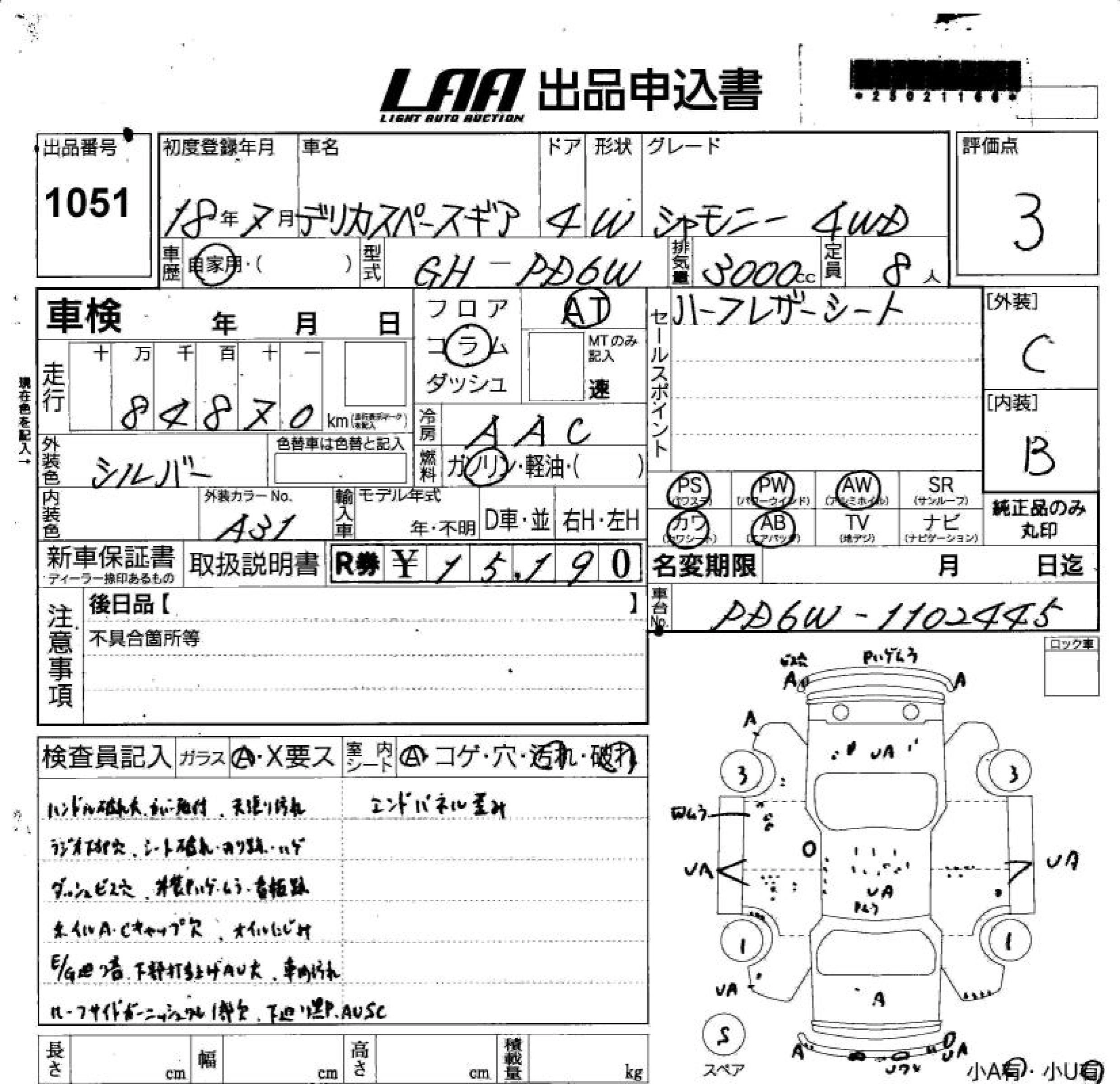 Статус выставлен на аукцион Лот 1051 Аукцион LAA Shikoku Дата аукциона 11.03.2026