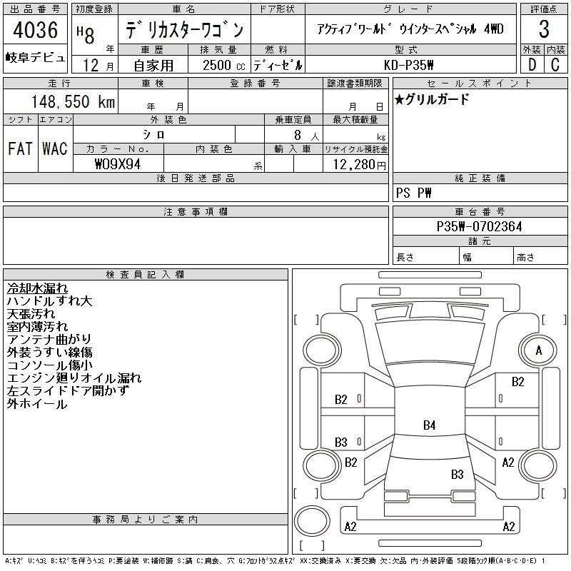 MITSUBISHI DELICA WAGON 1996 г., лот № 4036