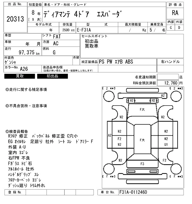 Год выпуска1996 Пробег 97 000 км КузовF31A Комплектация ESPADA