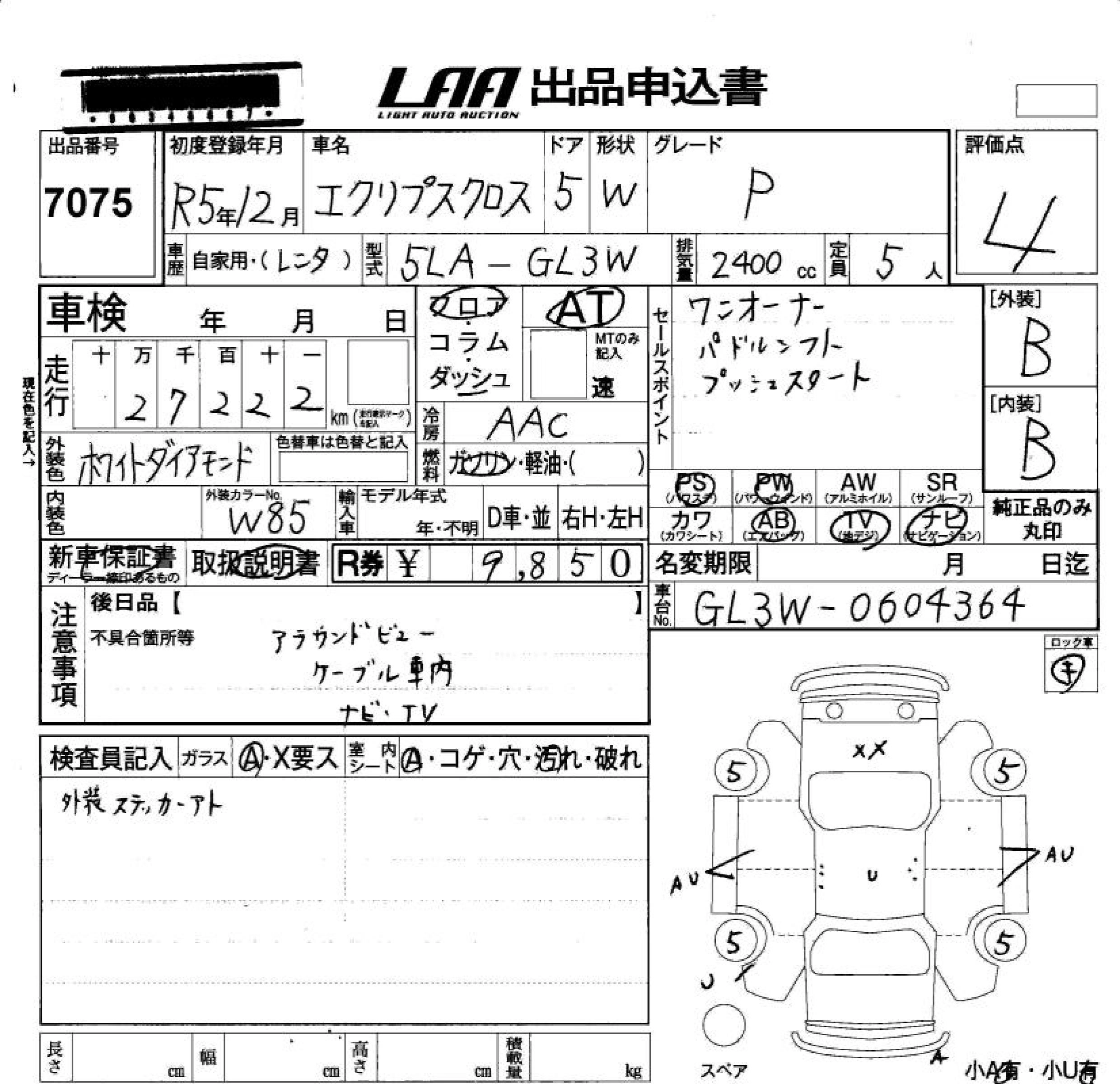 Статус не продан Лот 7075 Аукцион LAA Okayama Дата аукциона 23.01.2026