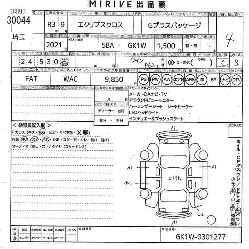Статус выставлен на аукцион Лот 30044 Аукцион MIRIVE Saitama Дата аукциона 11.03.2026