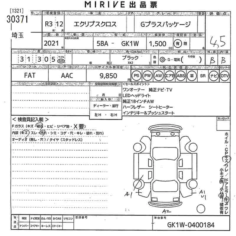 Статус выставлен на аукцион Лот 30371 Аукцион MIRIVE Saitama Дата аукциона 11.03.2026