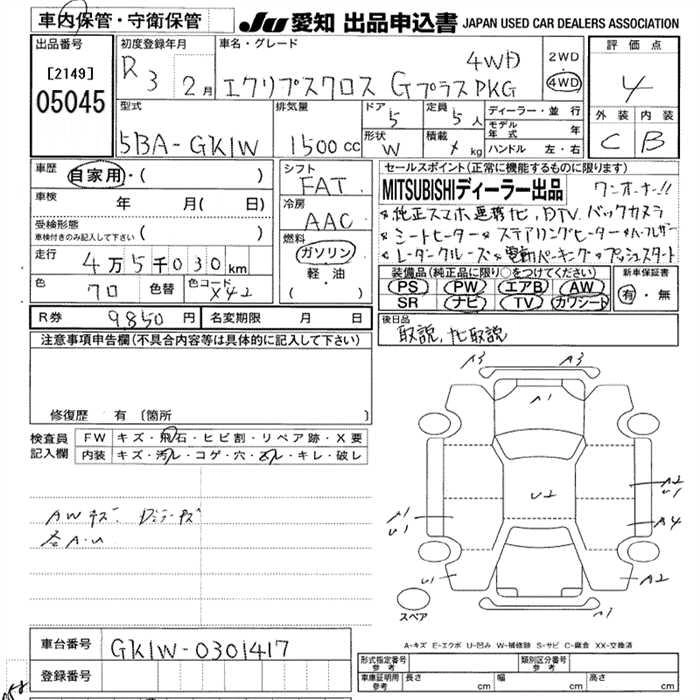 Статус выставлен на аукцион Лот 5045 Аукцион JU Aichi Дата аукциона 12.03.2026