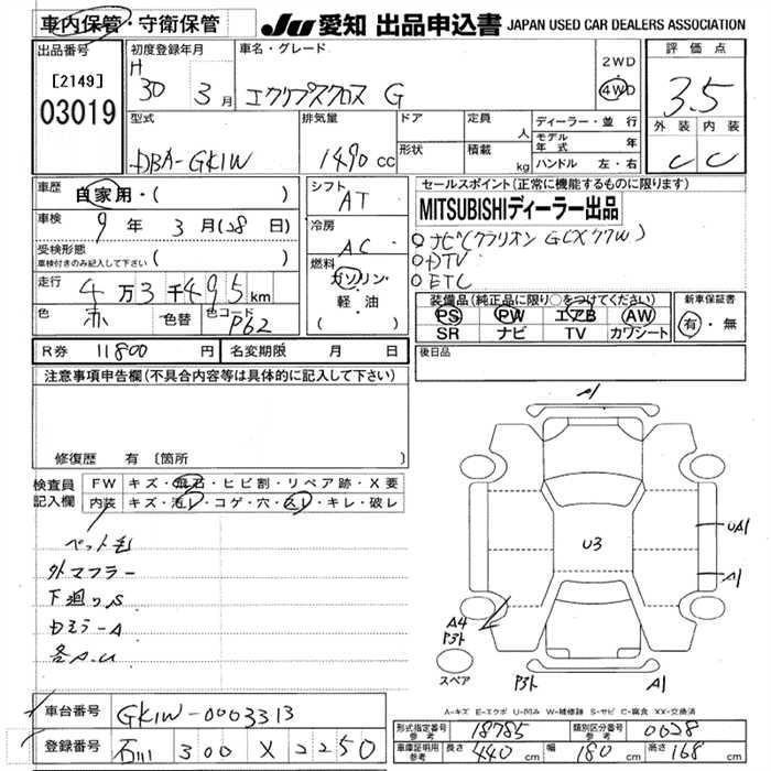 Статус выставлен на аукцион Лот 3019 Аукцион JU Aichi Дата аукциона 12.03.2026