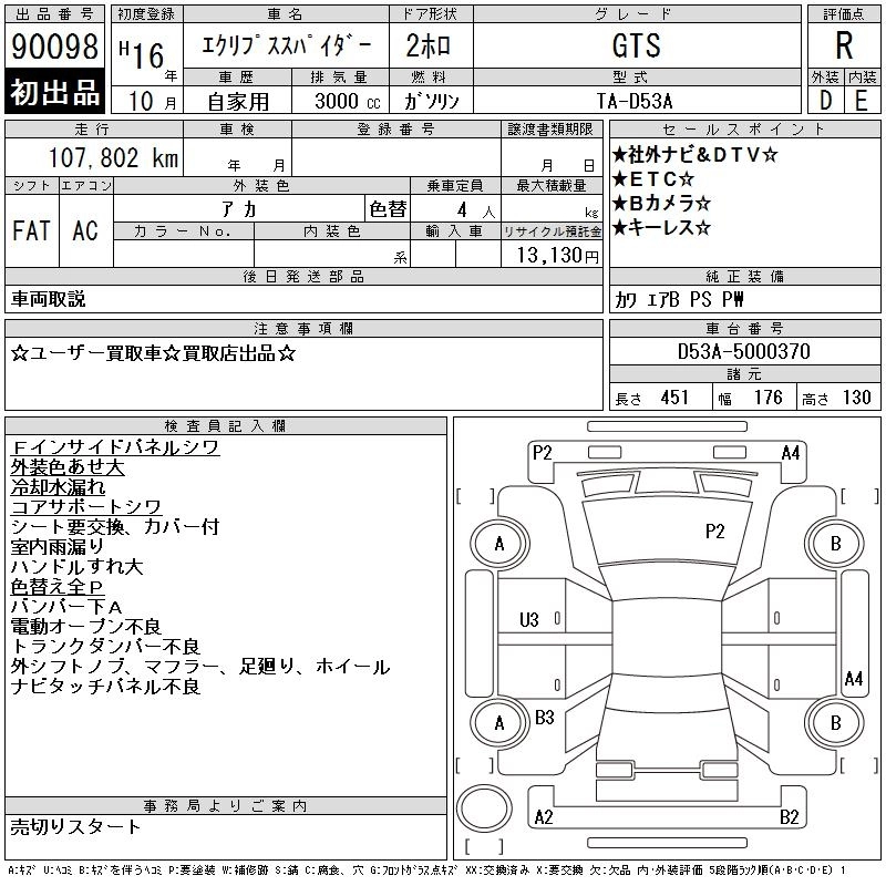 Год выпуска2004 Пробег 108 000 км КузовD53A КомплектацияGTS