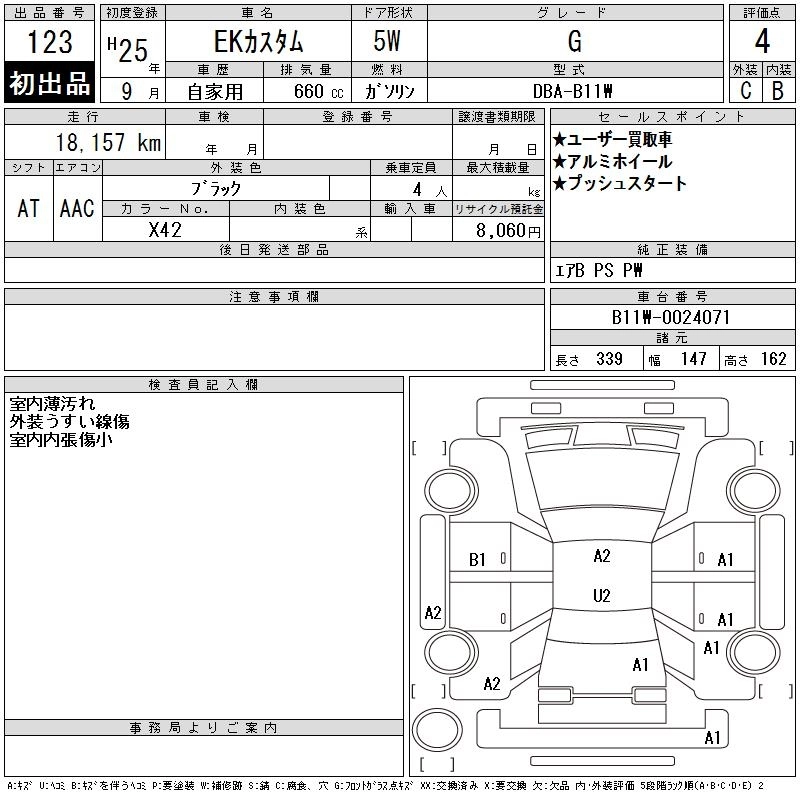 MITSUBISHI EK CUSTOM 2013 г., лот № 123