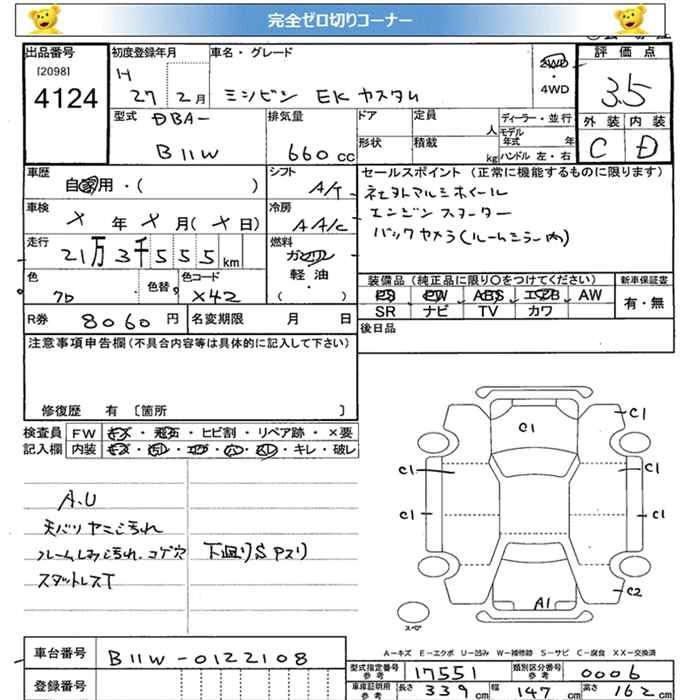 MITSUBISHI EK CUSTOM 2015 г., лот № 4124