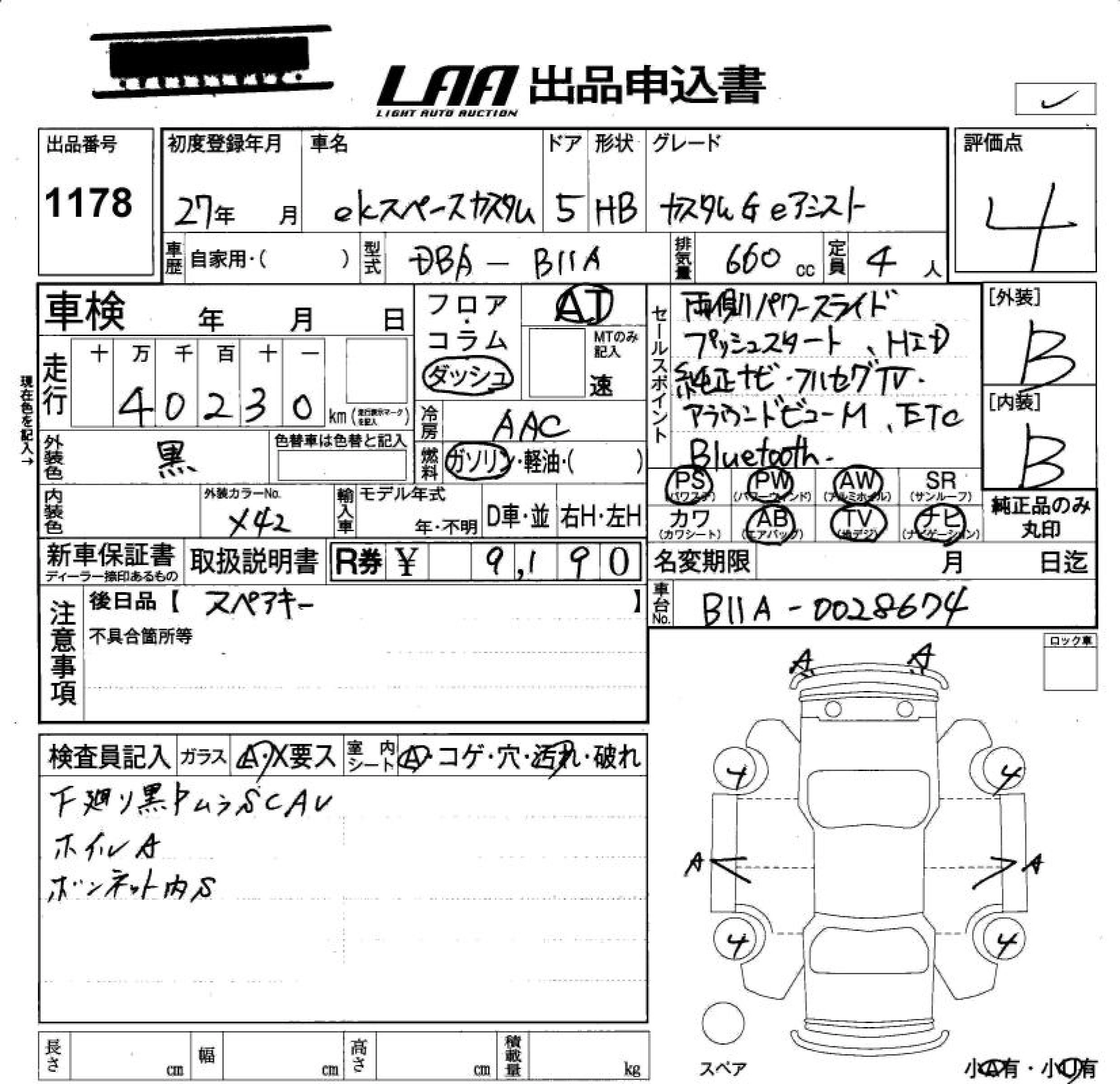 MITSUBISHI EK SPACE CUSTOM 2015 г., лот № 1178