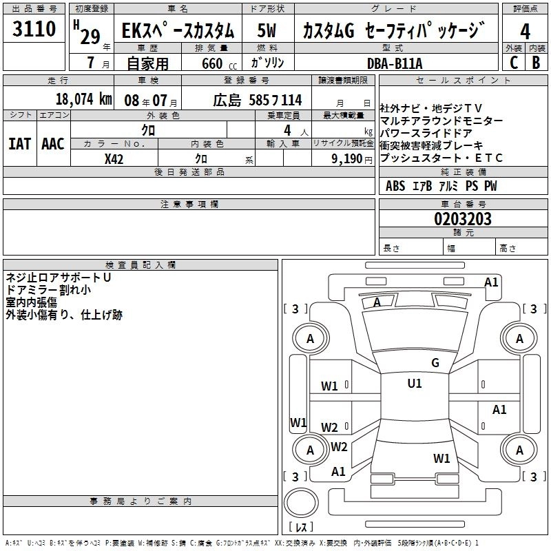 MITSUBISHI EK SPACE CUSTOM 2017 г., лот № 3110