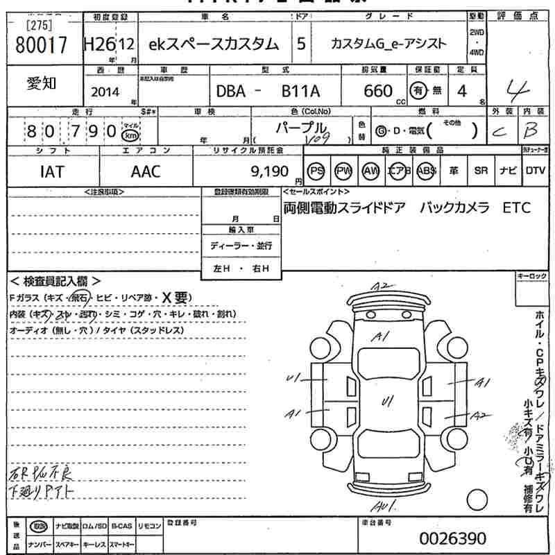 MITSUBISHI EK SPACE CUSTOM 2014 г., лот № 80017