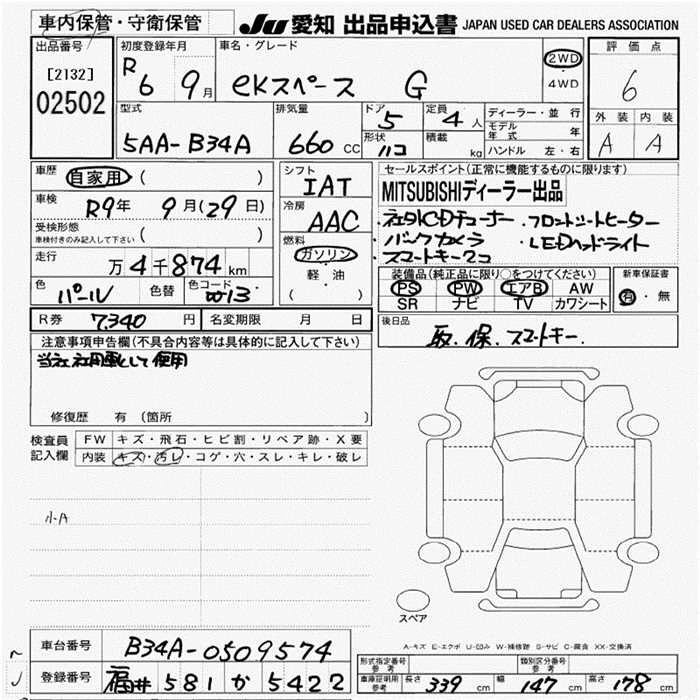 MITSUBISHI EK SPACE 2024 г., лот № 2502