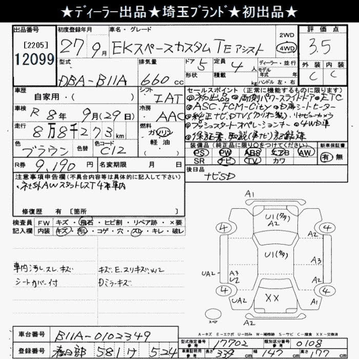 MITSUBISHI EK SPACE 2015 г., лот № 12099