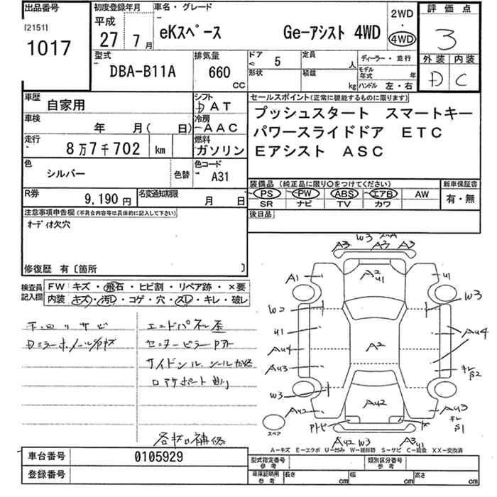 MITSUBISHI EK SPACE 2015 г., лот № 1017