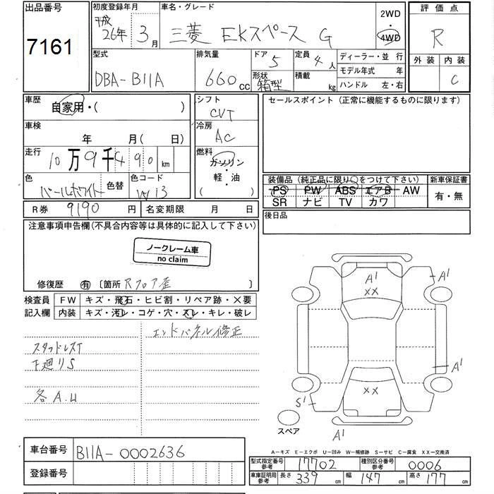 MITSUBISHI EK SPACE 2014 г., лот № 7161