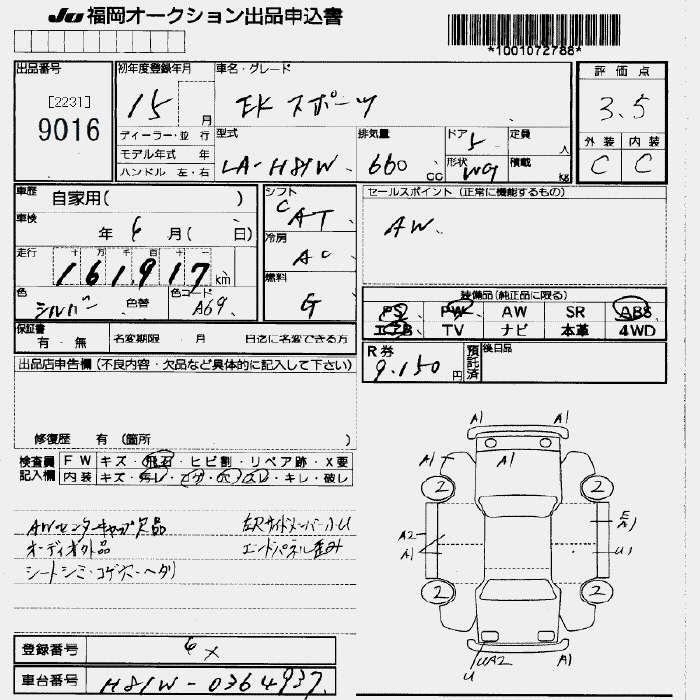 Статус не продан Лот 9016 Аукцион JU Fukuoka Дата аукциона 23.01.2026