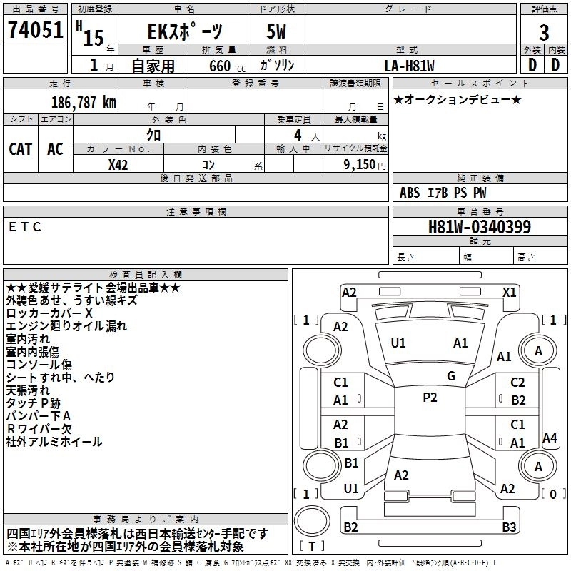 MITSUBISHI EK SPORTS 2003 г., лот № 74051