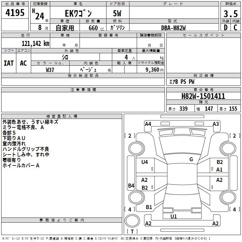 MITSUBISHI EK WAGON 2012 г., лот № 4195
