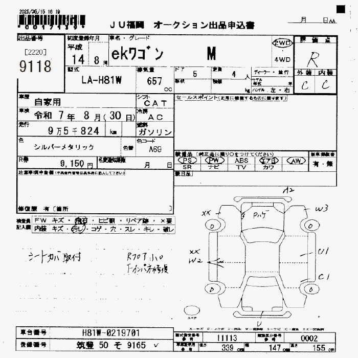 Статус выставлен на аукцион Лот 9118 Аукцион JU Fukuoka Дата аукциона 24.10.2025