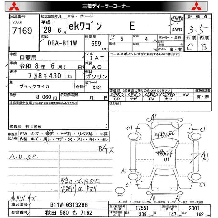 MITSUBISHI EK WAGON 2017 г., лот № 7169