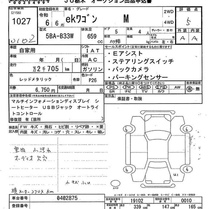 MITSUBISHI EK WAGON 2024 г., лот № 1027