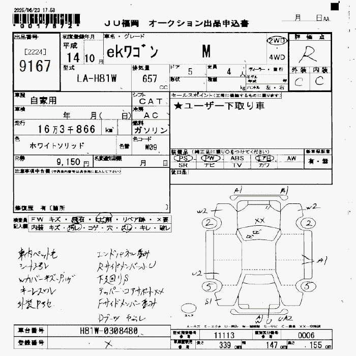 Статус не продан Лот 9167 Аукцион JU Fukuoka Дата аукциона 21.11.2025