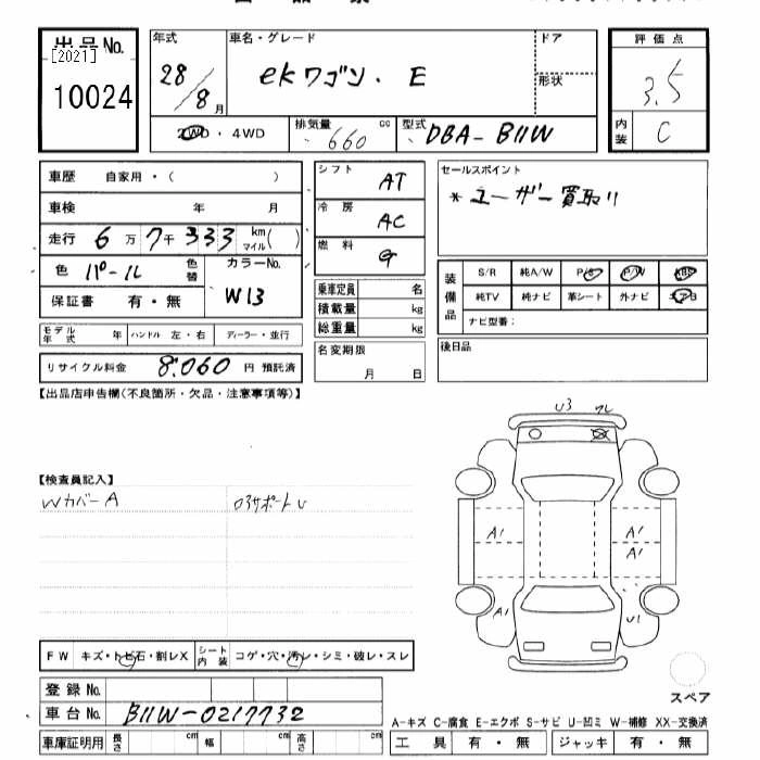 MITSUBISHI EK WAGON 2016 г., лот № 10024