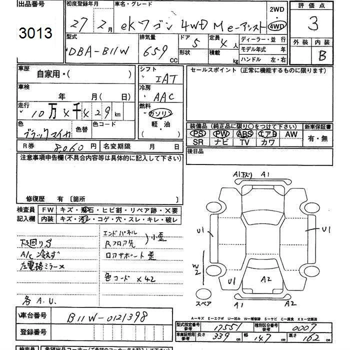 MITSUBISHI EK WAGON 2015 г., лот № 3013