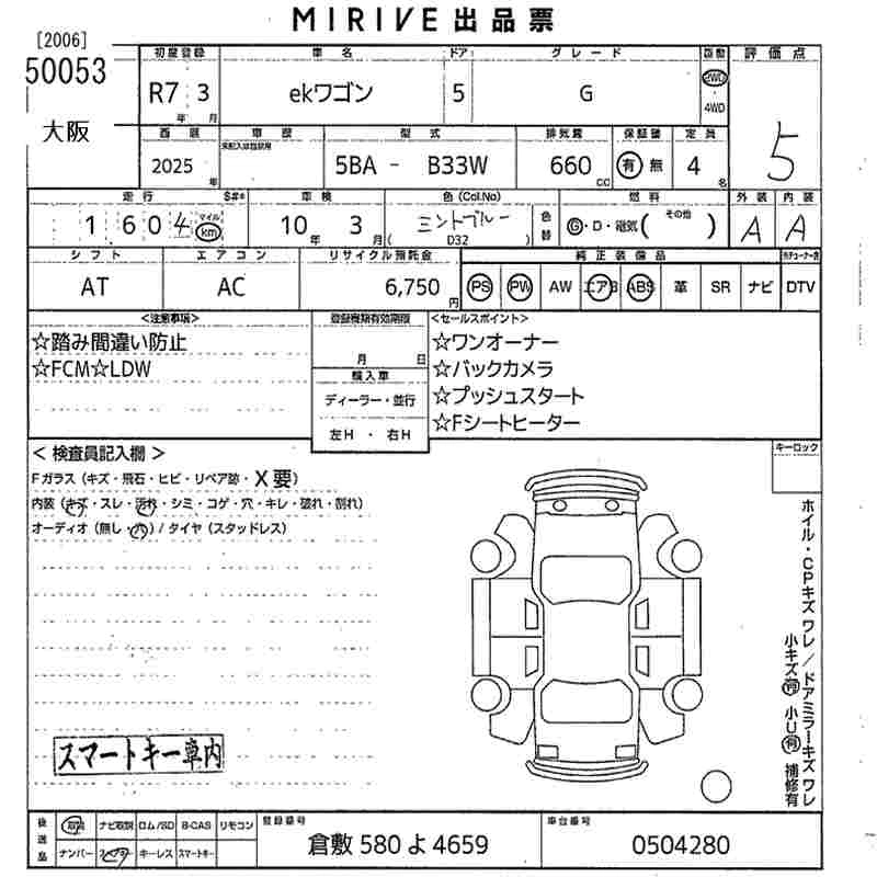 MITSUBISHI EK WAGON 2025 г., лот № 50053
